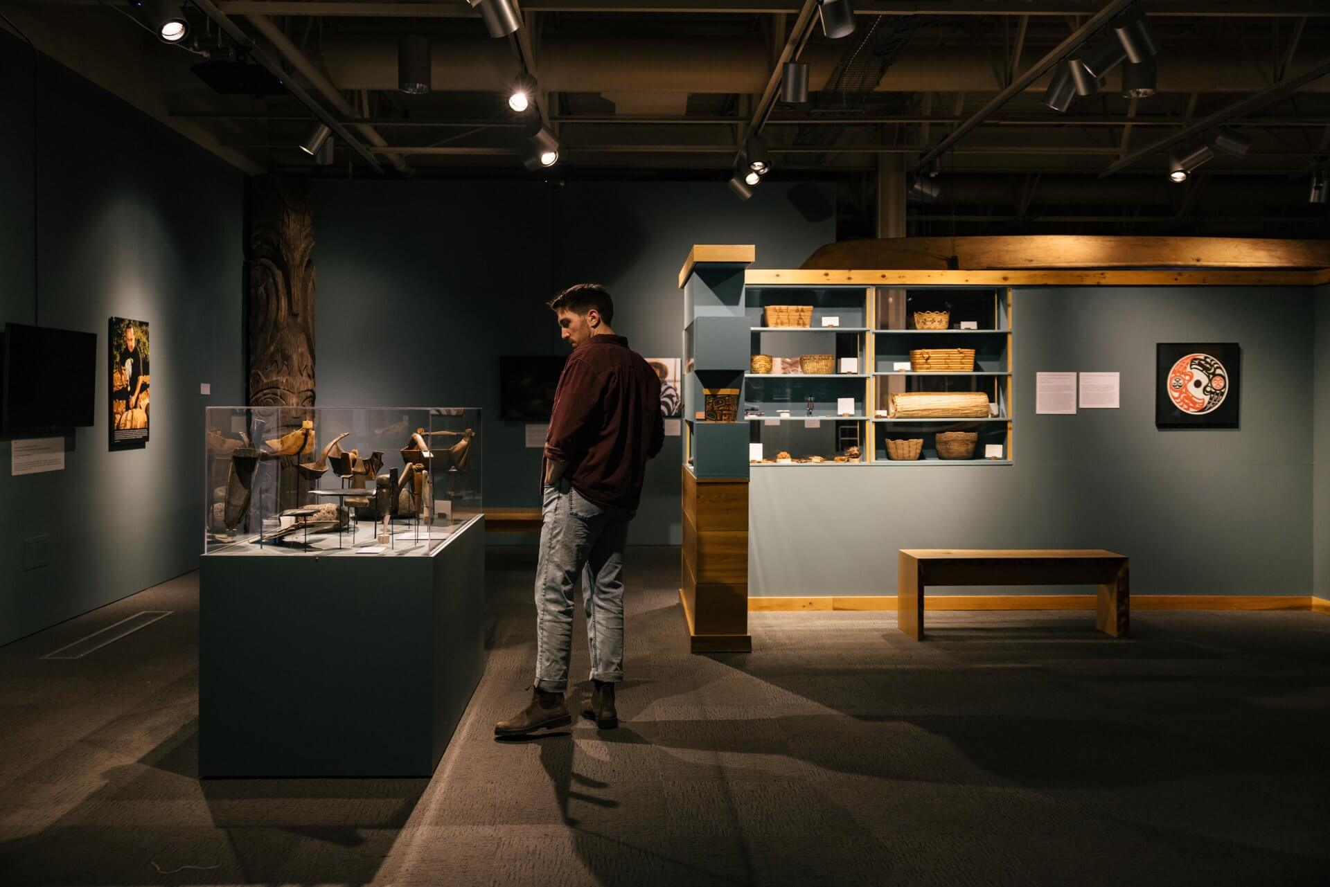 A permanent exhibit in the museum’s Lightcatcher Building, People of the Sea and Cedar centers the voices and cultures of the Lummi Nation and Nooksack Indian Tribe to tell the story of the Coast Salish peoples. The exhibit was created with input from Tribal representatives and features basketry, artwork, photographs, and first-person storytelling.