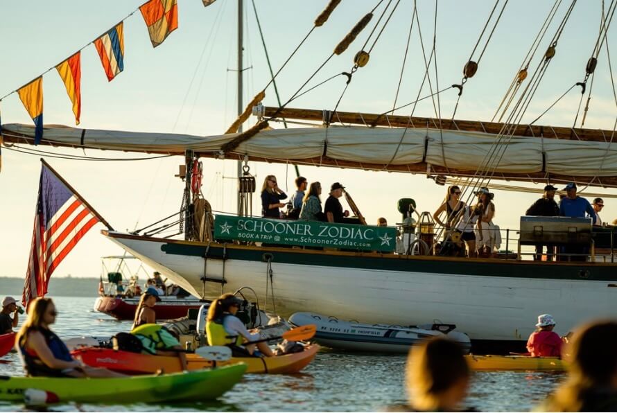 Pick a boat from our fleet and head out to listen to some tunes! Or if you’d like to enjoy the comforts of a slightly larger boat, tickets to be on the deck of the Schooner Zodiac can be purchased here.