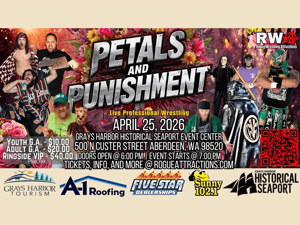 Reservations & TicketsRogue Wrestling Attractions presents Petals & Punishment on April 25, at the Grays Harbor Historical Seaport.
