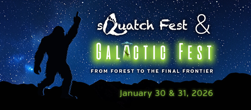Reservations & TicketsJoinJoin us for sQuatch Fest + Galactic Fest 2026, a two-day celebration of all things mysterious, cosmic, and fun! This legendary weekend brings together Bigfoot enthusiasts, UFO explorers, and families looking for a unique festival experience.