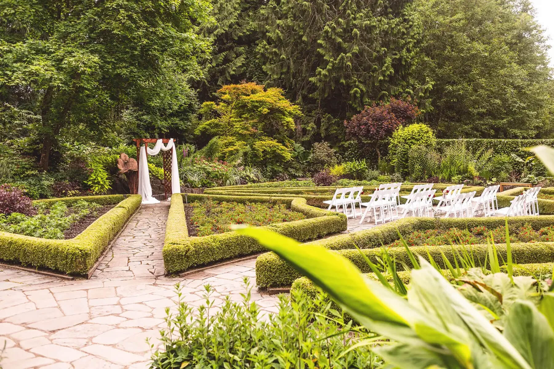 The garden also doubles as an unforgettable wedding venue where couples exchange vows surrounded by natural beauty that needs no embellishment. The event lawn, shaded by towering trees and bordered by brilliant flower beds, offers an elegant and earthy setting for life’s most memorable moments.