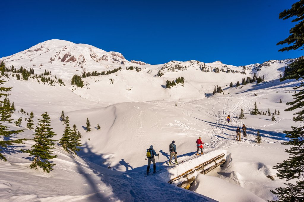Mount Rainier is a popular winter recreation destination thanks to abundant snowfall and fantastic views. Visitors can enjoy many winter activities, from snowshoe walks to snowmobiling.